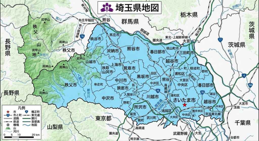 埼玉県内では秩父地域(秩父市・小鹿野町・皆野町・長瀞町・横瀬町・東秩父村)と飯能市・奥武蔵エリアで目撃情報が報告されています。「都心から日帰りで行ける山岳ツーリング地」として人気のエリアだけに、ライダーは特に意識したいポイント。