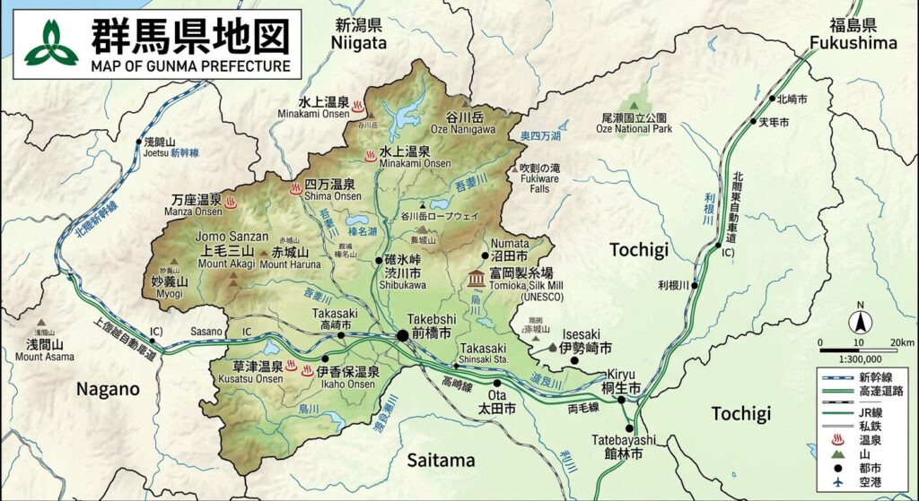 群馬県は関東でクマ出没件数が最多レベル。みなかみ町・利根郡・吾妻郡など、谷川岳や赤城山周辺の山間部で頻繁に目撃情報があります。