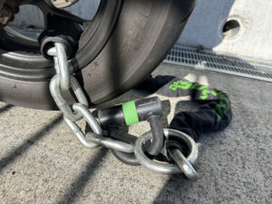 この2台のバイクで、こちらのチェーンロックを使用しています。